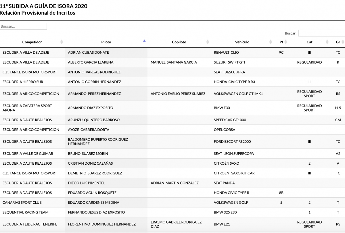 Publicamos la relación Provisional de Incritos de la 11ª Subida a Guía de Isora, evento que se celebrará este próximo sábado en la isla de Tenerife.