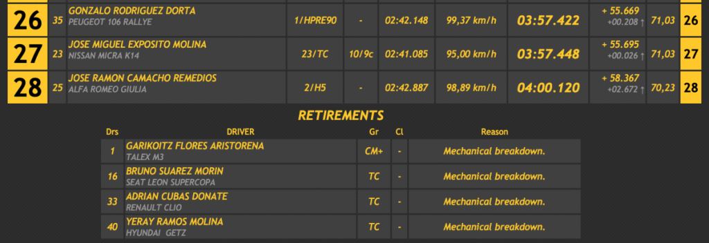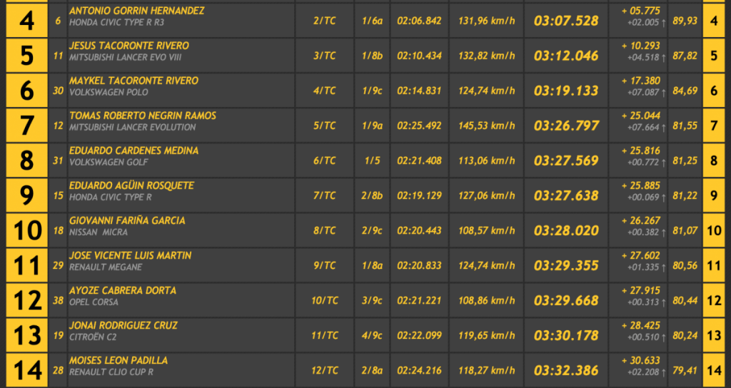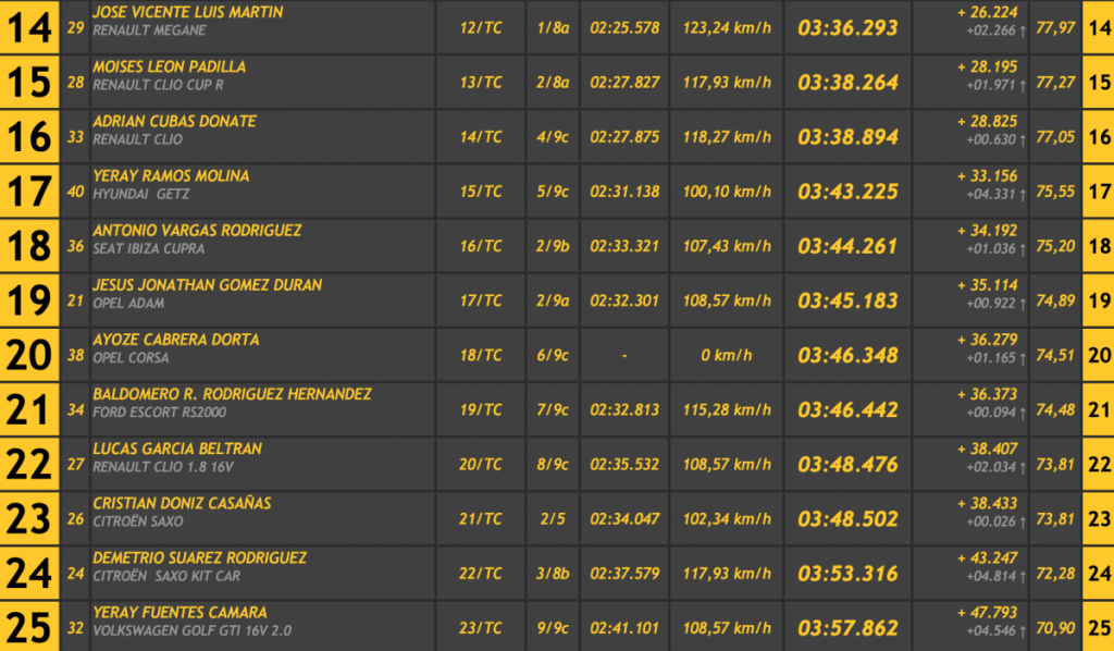 Gorrín, campeón de Canarias 2020, a pesar de baja su tiempo inicial en dos segundos y medio (3:07.528), se queda a 5.775 del liderato y a 2.005 de Díaz.