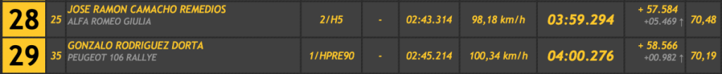 Su tiempo le ha valido para superar en 2.209 a Juan Luis Cruz (Porsche 997 GT3 Cup Rallye 2010), en 4.920 a José Alberto Díaz (Porsche 997 GT3 Cup), en 8.358 a Tony Gorrín (Honda Civic Type R R3), en 9.181 a Jesús Tacoronte (Mitsubishi Lancer Evo VIII) y en 9.745 a Juan Carlos Brito (Ford Escort WRC), que después de anotarse un mejor tiempo de 3:01.753, perdía mucho en la primera oficial. que si logra repetirla en la ascensión final le puede dar un puesto, como mínimo, de podio.