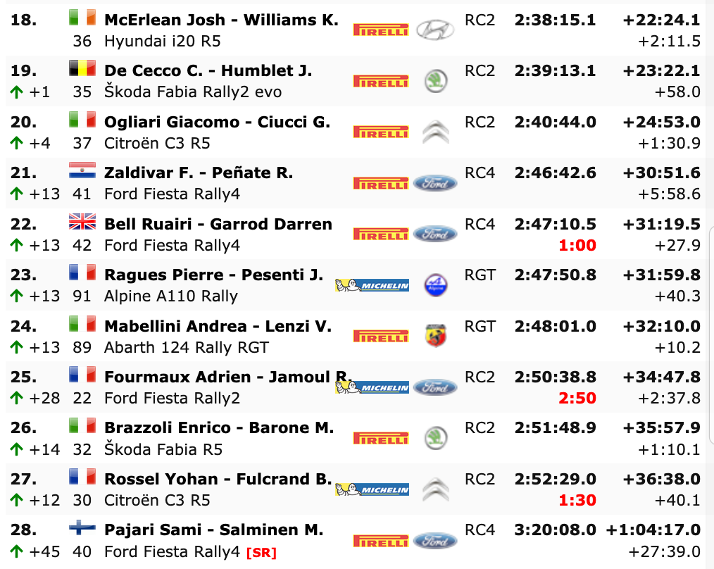 Donde si hubo movimiento fue en la lucha por la segunda posición, en la que partían los españoles Dani Sordo y Carlos del Barrio (Hyundai i20 WRC), pero no pudieron con el mayor empuje de sus compañeros de equipo, Ott Tänak y Martin Järveoja (Hyundai i20 Coupe WRC), que fueron más rápidos que ellos y por sólo 1.4 se alzaban con el segundo puesto.