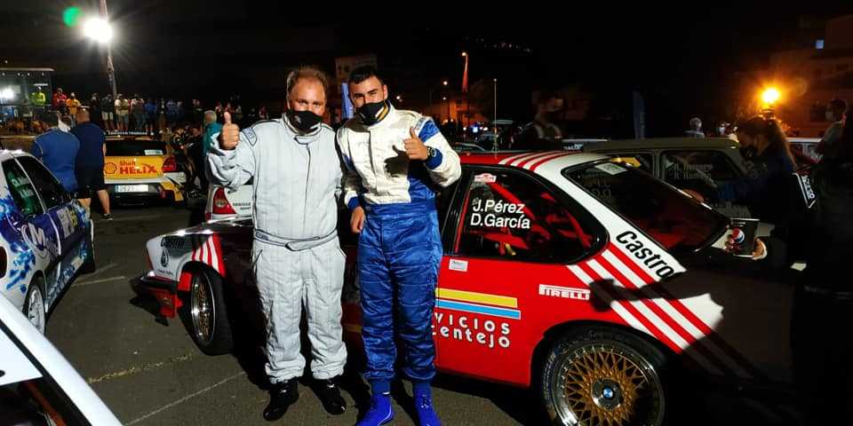 El copiloto tinerfeño Dani García celebra su puesto de podio en el Interinsular de Tenerife en el apartado de copilotos en la categoría R.S.