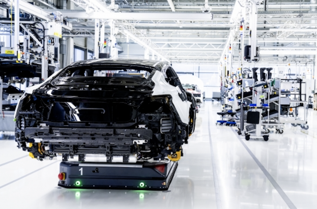 En Böllinger Höfe, donde acaba de iniciarse la producción en serie del Audi e-tron GT, la pasión se une a la precisión, a la innovación y a la sostenibilidad. Aquí, las altas prestaciones y la conciencia ambiental van de la mano: con un 100% de electricidad ecológica y calor procedente de fuentes renovables, la producción se lleva a cabo con un balance neutro de emisiones de carbono. El proceso de fabricación también evita el papel y el embalaje, utiliza aluminio y polímeros procedentes de ciclos cerrados y, como primicia en un modelo de Audi, se ha planificado sin utilizar ningún prototipo físico.