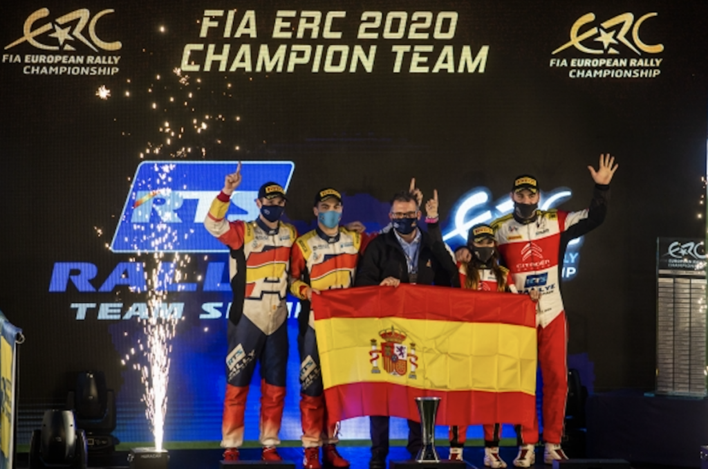 Otro éxito más que añadir al palmarés internacional del Rallye Team Spain, que, después de haber conquistado en 2019 el ERC3 Junior, el ERC3 y el Junior WRC, se acaba de coronar asimismo campeón del ERC Teams, gracias a los grandes resultados logrados por Efrén Llarena-Sara Fernández y Pep Bassas-Axel Coronado. Protagonistas todos ellos de una alianza perfecta como integrantes de la doble estructura que, por primera vez, ha implementado este año el equipo federativo, inscribiendo en el Europeo un flamante Citroën C3 R5 y un Peugeot 208 Rally 4 de última generación, gestionados, respectivamente, por Sports&You y Mavisa Sport.