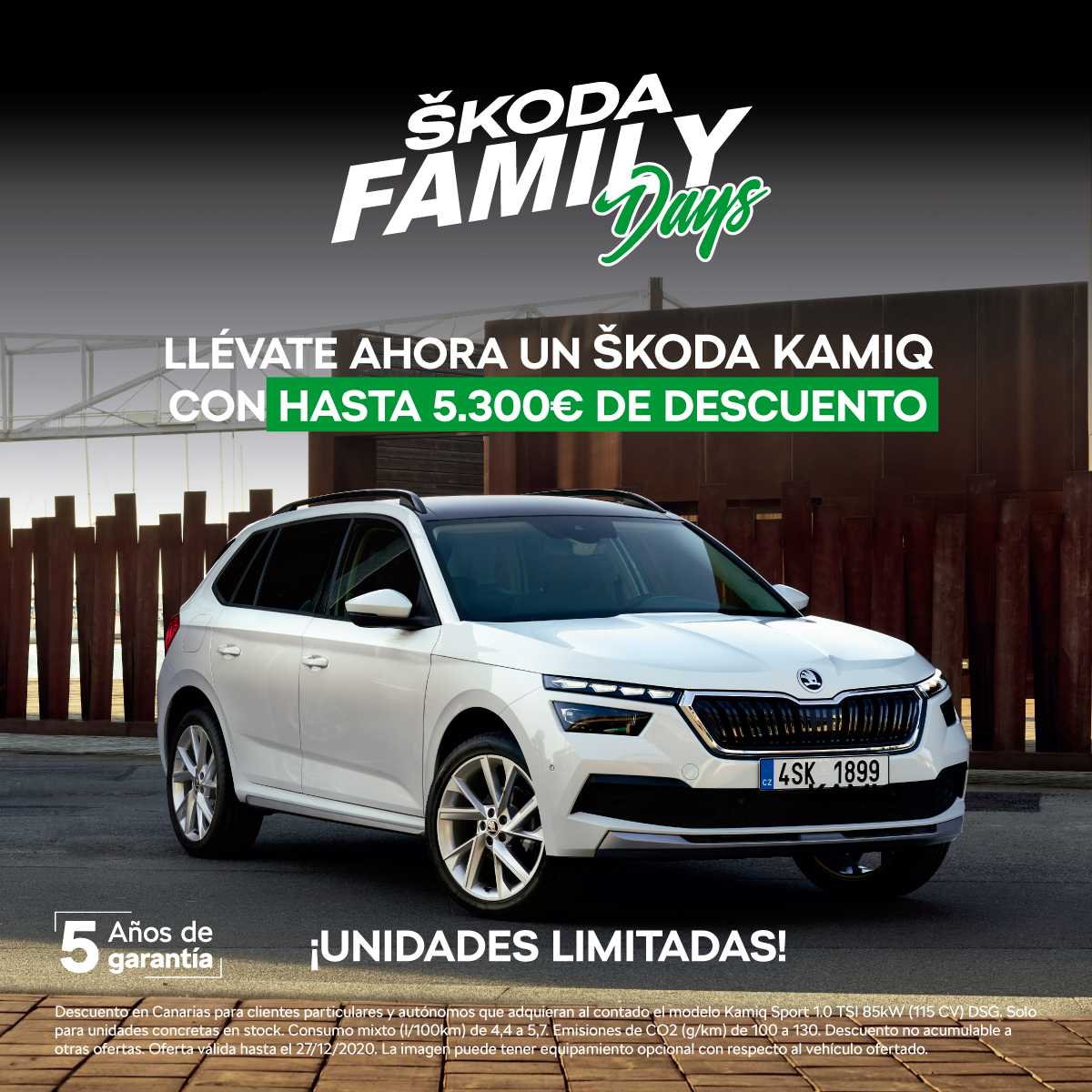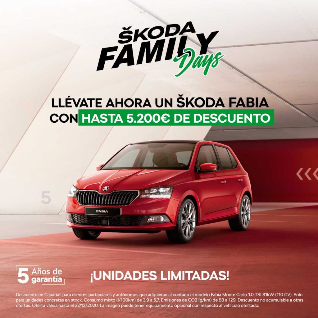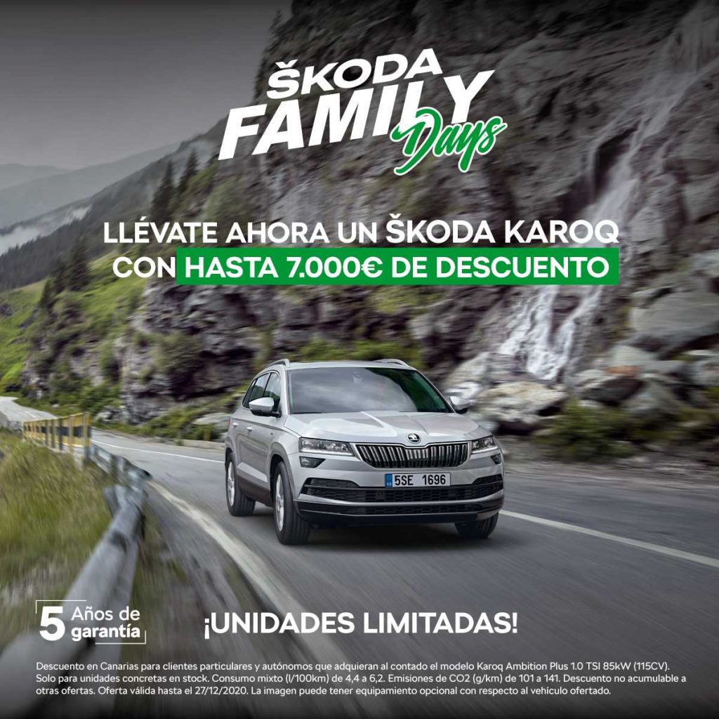 Desde el próximo 10 hasta el 27 de diciembre, ŠKODA Canarias quiere ayudar a las familias canarias. Para esta extraordinaria ocasión la marca verde baja los precios en más de 300 unidades en stock para adaptarse a las necesidades de cada cliente.