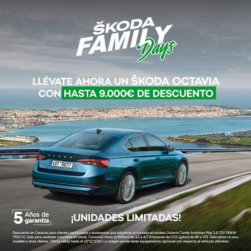 › Los descuentos serán válidos en todos los centros de ŠKODA Canarias, algunos de los cuales abrirán durante los fines de semana de diciembre
