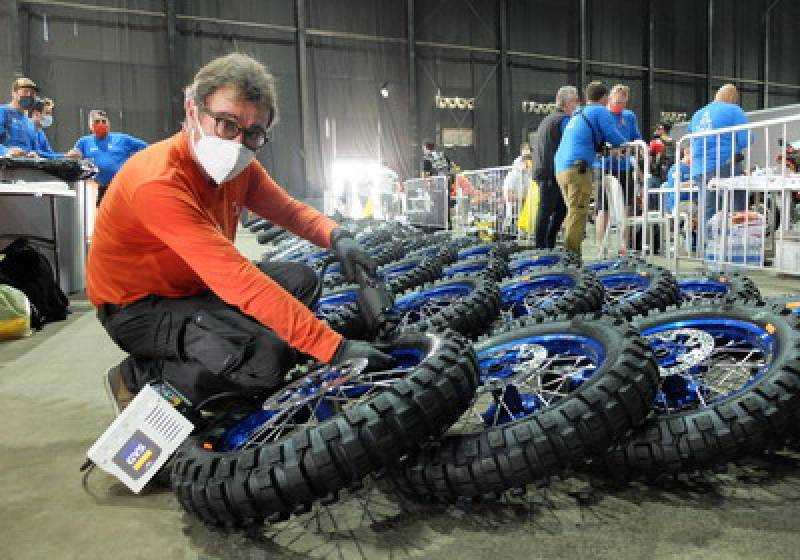 El cálculo no ha cambiado desde que existe el motociclismo: ¿cómo ir más rápido que los rivales y al mismo tiempo limitar los riesgos que se asume? En el Dakar también está presente este dilema de las competiciones de motor. Por un lado, están los pilotos que buscan un excelente resultado y, por el otro, los organizadores que otorgan prioridad a la seguridad de los pilotos. Para intentar aportar respuestas a esta problemática, se organizó una reunión en Lisboa el pasado otoño entre los representantes de los diferentes actores del rally raid: pilotos, fabricantes, organizadores, federaciones… “Resulta evidente que las motos van demasiado rápido ahora”, recalca David Castera, director del Dakar. “Las motos con un motor monocilíndrico 450 corren igual de rápido ahora que las twins 800 de finales de los años 80. Las motos son mucho más potentes en la aceleración. Se puede mejorar la seguridad en torno a dos ejes principales. La seguridad activa, que se centra en mejorar el equipamiento, como por ejemplo el airbag obligatorio, y la seguridad pasiva, que podemos imponer obligando a los pilotos a correr menos rápido. Demasiados pilotos desean correr como en motocross. El rally raid es otra cosa. Se trata, ante todo, de aguante y resistencia”. Por eso los pilotos favoritos solo podrán utilizar seis neumáticos traseros para terminar las dos semanas de carrera. “No podrán permitirse acelerar al máximo en los tramos pedregosos, si desean ganar la carrera”, insiste David Castera. “Van a tener que proteger y ahorrar material si quieren aguantar”. Jordi Pérez es el encargado de marcar los seis neumáticos de los competidores sometidos a esta nueva restricción. “Son 36 los pilotos concernidos”, precisa el español en las verificaciones técnicas. “Los neumáticos, que deben ser todos del mismo modelo, se marcan a fuego y también reciben un adhesivo especial.