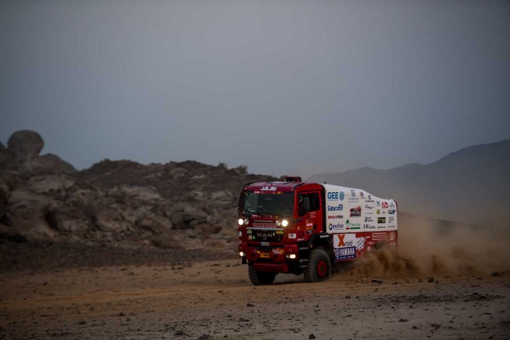 Pero antes, tocaba pasar por el podio de salida desde la ciudad de Jeddah y disputar de una pequeña prólogo de tan sólo 11 km. En la primera toma de contacto con el desierto saudí del equipo Marrones Jalán, han terminado 35º de la clasificación absoluta de camiones.