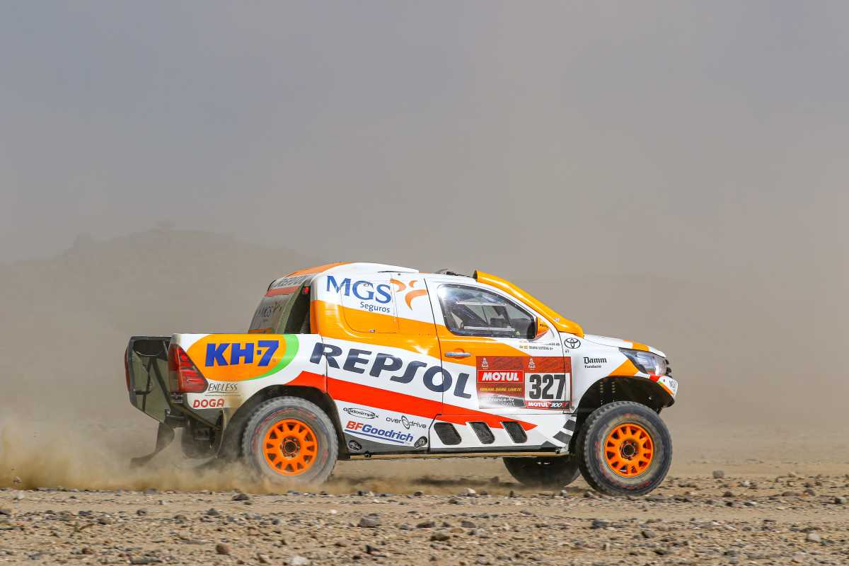Otra situación clave en la etapa se producía a escasos 50 kilómetros del final de la especial, cuando el Repsol Rally Team se encontraba en mitad de la pista a Ronan Chabot, que había pinchado por cuarta vez y ya no tenía recambios. Isidre y Txema no han dudado ni un momento en detenerse para cederle uno de sus neumáticos BFGoodrich KDR 2 en un gesto que ha permitido al francés de Toyota proseguir la marcha. “Hemos creído que era lo más oportuno, porque así es el espíritu del Dakar y otro día seremos nosotros los que necesitaremos ayuda”, reconocía Isidre, que ha perdido minuto y medio en este gesto de solidaridad.
