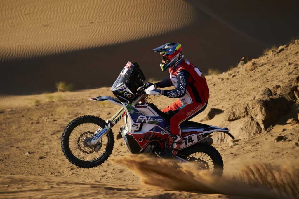 El piloto del FN Speed Team se cuela en el Top 20 en una jornada rápida, con mucha arena y con el primer paso de dunas de la carrera.
