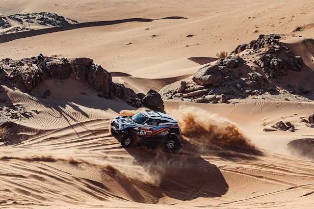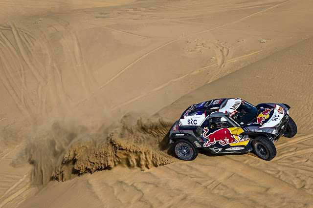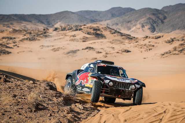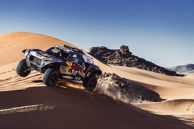 Stéphane Peterhansel y Edouard Boulanger han finalizado la segunda etapa del Dakar 2021 en la segunda posición. El dúo francés solo ha sido superado por Nasser Al-Attiyah, en una jornada en la que los competidores han ido desde Bashi hasta Wadi Ad-Dawasir y se han enfrentado a las primeras dunas. Carlos Sainz y Lucas Cruz han llegado a meta en tercera posición tras sufrir algunos problemas. Los dos MINI JCW Buggy están situados actualmente en la primera y la segunda posición de la clasificación general.