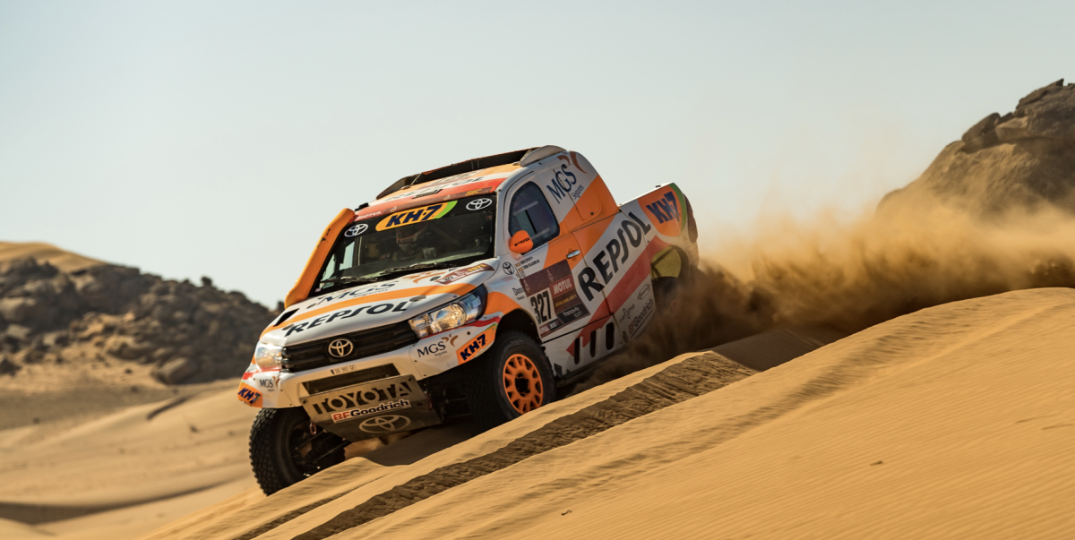El único contratiempo del día para el Repsol Rally Team se ha producido en la cresta de una duna, donde se han visto obligados a encallar para no colisionar con otro vehículo varado. «Ha sido una lástima porque estábamos pasando todas las dunas a muy buen ritmo. Hoy hemos bajado las presiones de los neumáticos BFGoodrich y el Toyota se ha comportado mucho mejor, tanto en la arena como en las zonas más rápidas», afirmaba el de Oliana, que ha invertido 3h 58’52» en completar la etapa.