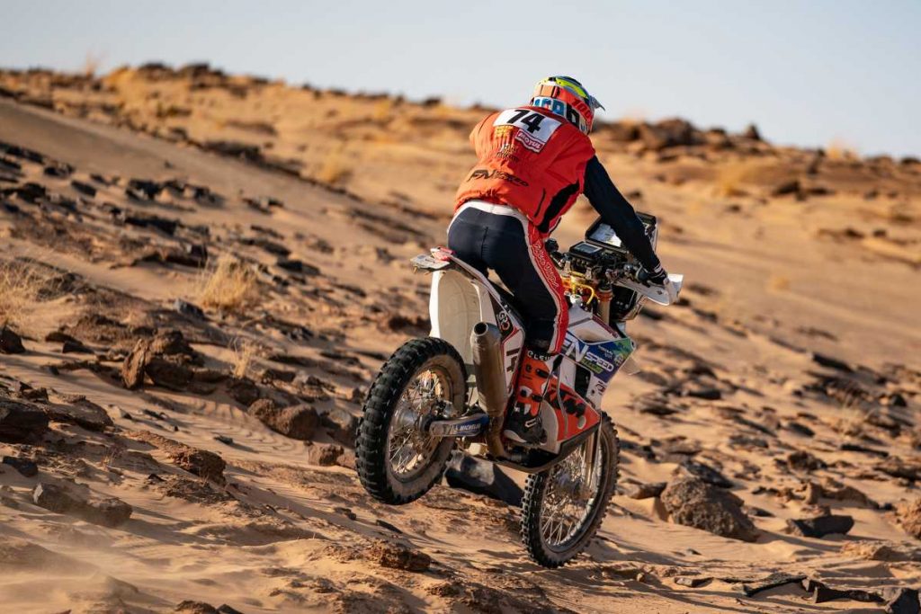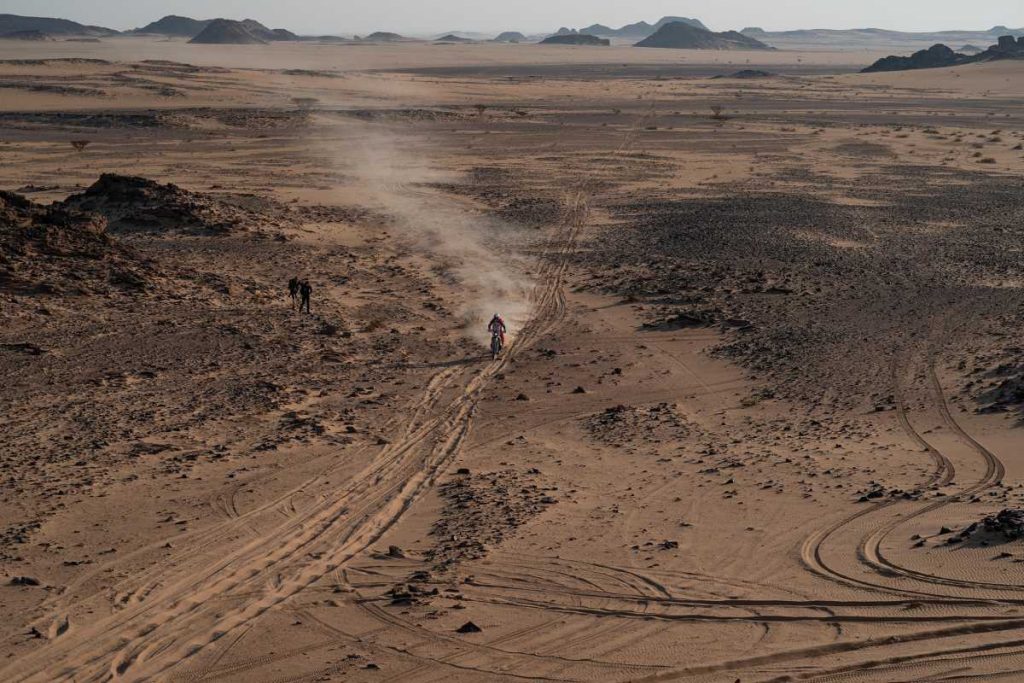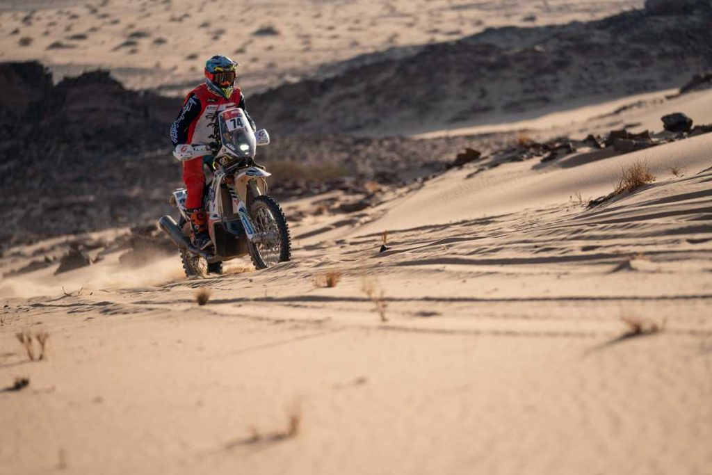 “Ha sido una etapa muy rápida y larga. En el kilómetro 190 me he caído, afortunadamente todo se ha quedado en un susto, estoy bien pese a que me ha saltado el airbag. En el incidente se me ha doblado el sistema de navegación y he tenido que pasar las hojas del roadbook de forma manual los últimos 220 km del tramo”, ha explicado el piloto de KTM España a su llegada al vivac.