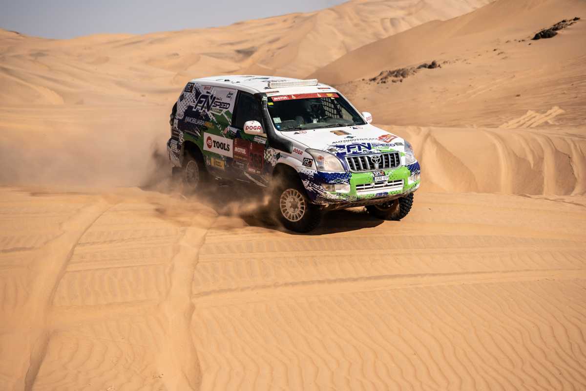 Joan Font y Sergi Brugué han sufrido amargamente para completar la segunda etapa del Dakar, una especial de 457 kilómetros cronometrados –más otros 228 de enlace– entre las poblaciones de Bisha y Wadi Ad-Dawasir. El Toyota Land Cruiser del FN Speed Team volvió a ser uno de los últimos vehículos en cruzar la línea de meta debido a las muchas dificultades que tuvo para sortear las primeras dunas de la presente edición.