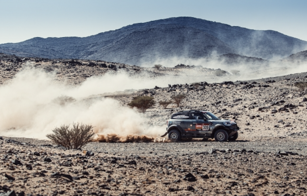 El MINI JCW Buggy de Stéphane Peterhansel y Edouard Boulanger continúa liderando la clasificación general del Dakar 2021 después de la cuarta etapa del rally, que ha llevado a los competidores desde Wadi Ad-Dawasir hasta Riad. El dúo francés ha acabado la etapa en la segunda posición, a solo once segundos de Nasser Al-Attiyah, el ganador. Sus compañeros, Carlos Sainz y Lucas Cruz, han acabado quintos y se mantienen en el tercer puesto de la general.