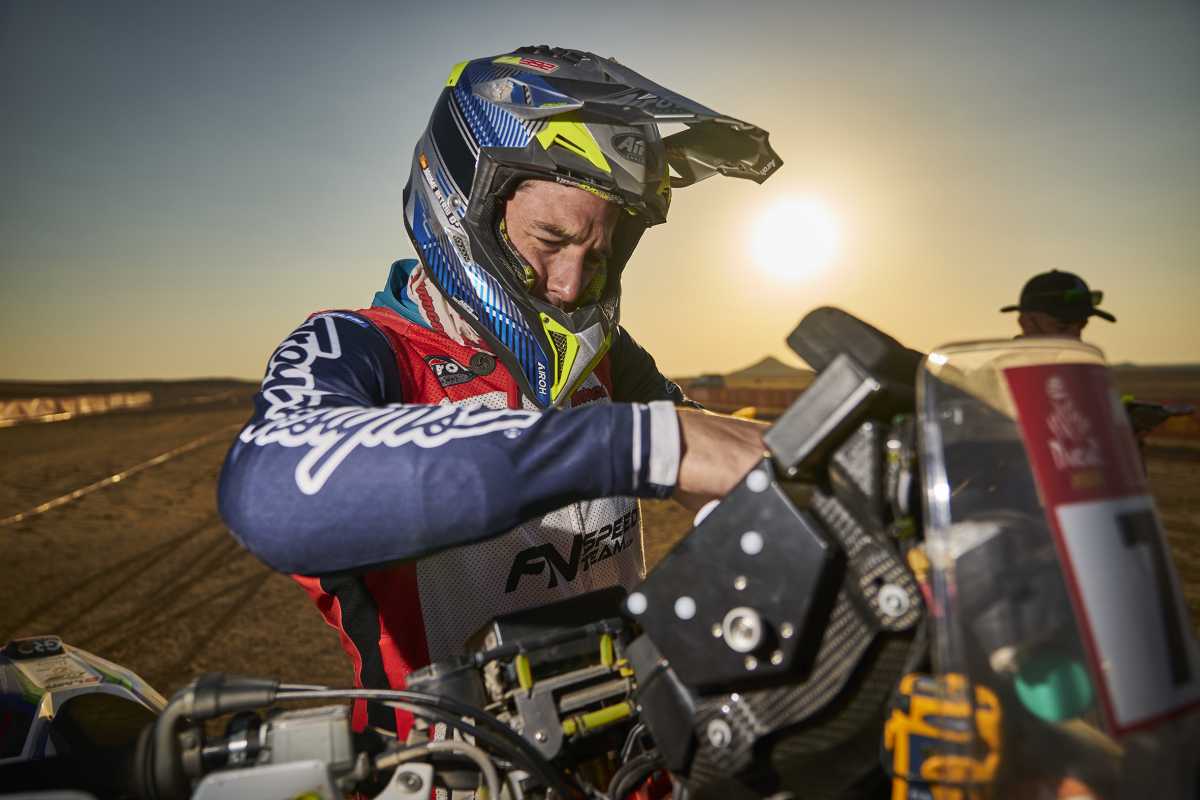 “Era una zona muy lenta, con muchas piedras, estaba mirando el roadbook y en cuanto he perdido de vista la pista me he caído sin mayores consecuencias”, ha explicado Betriu al término de la cronometrada de 456 km. “Me lo he tomado con calma, sin arriesgar, cogiendo el ritmo hasta el primer refueling”.