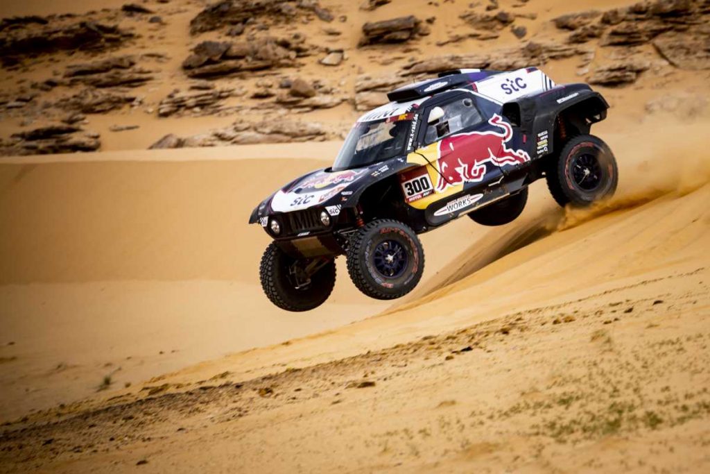 La segunda parte de la etapa maratón del Rallye Dakar ha sido limpia para Carlos Sainz y Lucas Cruz (MINI JCW Buggy). En los 375 kilómetros cronometrados la pareja española ha finalizado segunda a tan solo 52 segundos del vencedor de la especial Nasser Al Attiyah (Toyota), con Peterhansel tercero a 3.03.