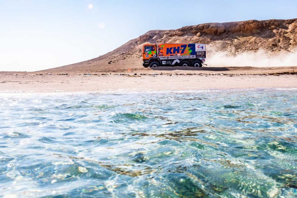 “Ha sido una etapa difícil, muy bonita al principio junto al mar, pero sólo era un espejismo, porque después ha resultado ser muy dura. Nos hemos encontrado con piedras de todo tipo y trialeras descomunales, pero hemos ido a ritmo, conservando el camión porque teníamos mucho más a perder que a ganar”, declaraba el piloto catalán Jordi Juvanteny a su llegada al campamento.