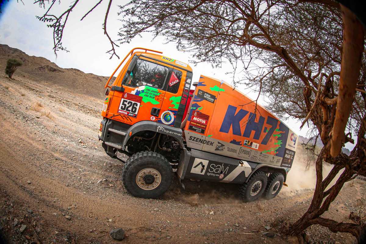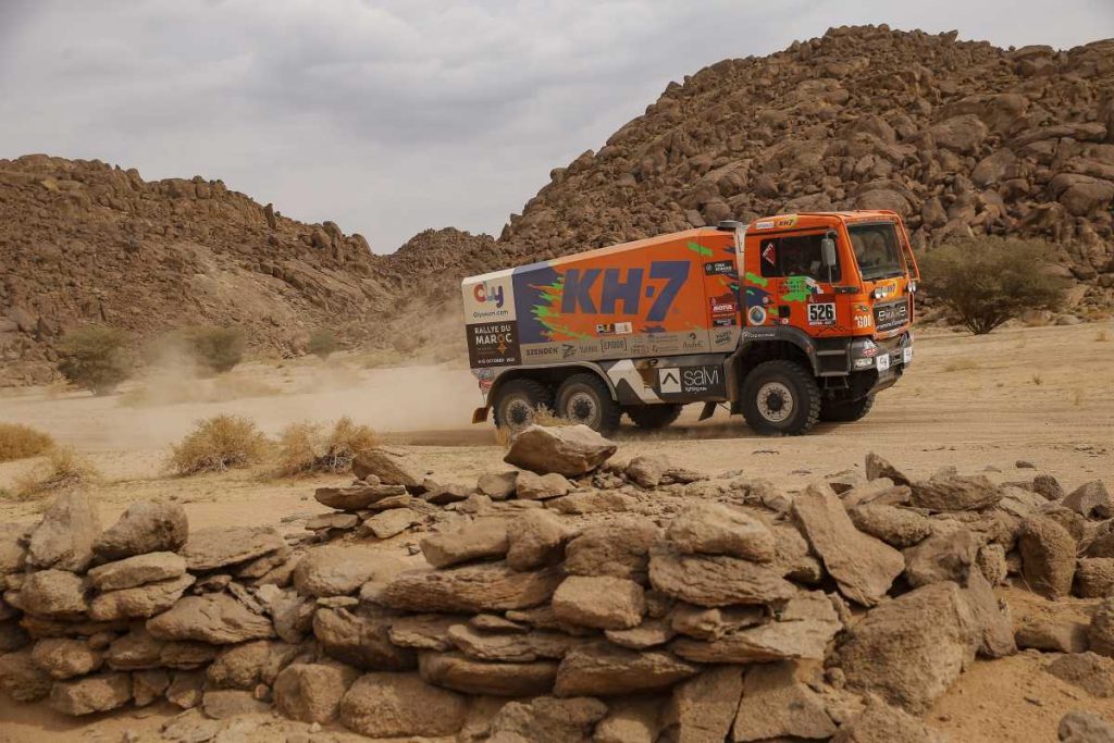 Un total 452 kilómetros son los que separan al KH-7 Epsilon Team de la gloria. Después de completar más de 7.000 en 12 días, parece poco para Jordi Juvanteny y José Luis Criado, que están a punto de culminar la hazaña de finalizar con solo dos en cabina. Además, su gesta podría redondearse con el top 15 absoluto de camiones y los títulos de Producción y 6×6.