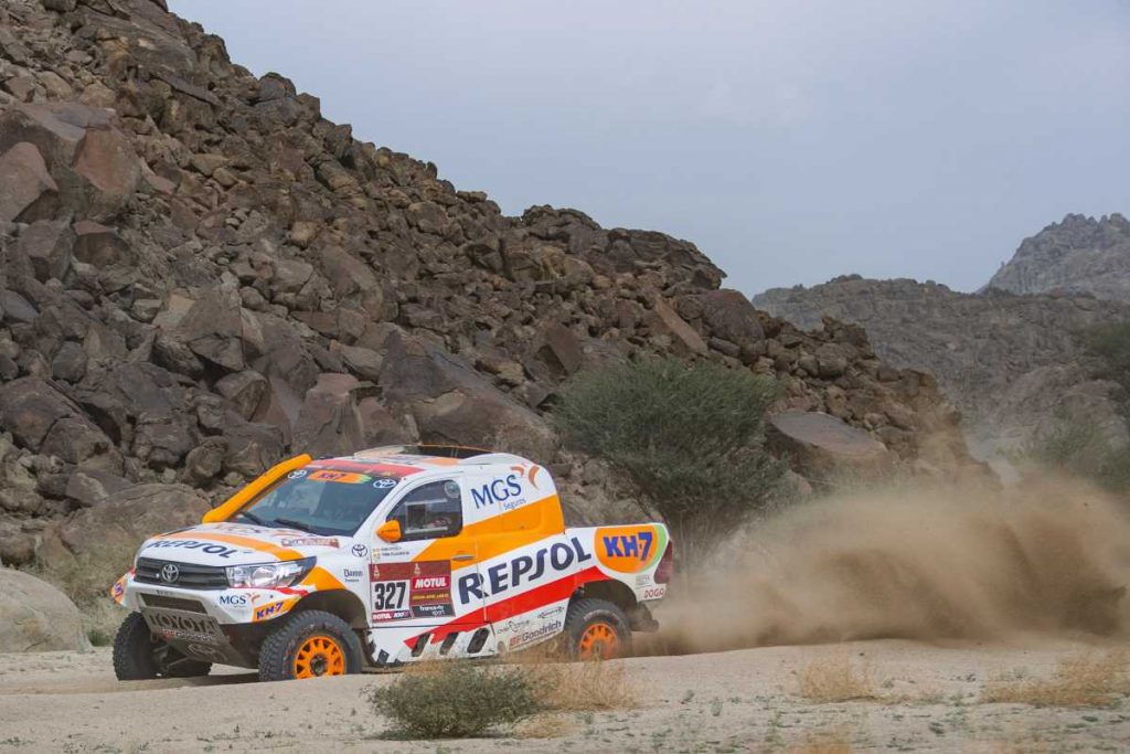 La 11ª jornada partía desde AlUla y acababa en Yanbu, una de las más largas y peligrosas del Dakar 2021, al constar de 464 kilómetros cronometrados. Isidre Esteve y Txema Villalobos, salvo en la parte inicial por culpa del polvo que levantaban otros vehículos, han logrado imprimir un ritmo elevado con su Toyota Hilux Overdrive y superar sin problemas las dunas finales. Estaba siendo un buen día, hasta que se torció casi al final.
