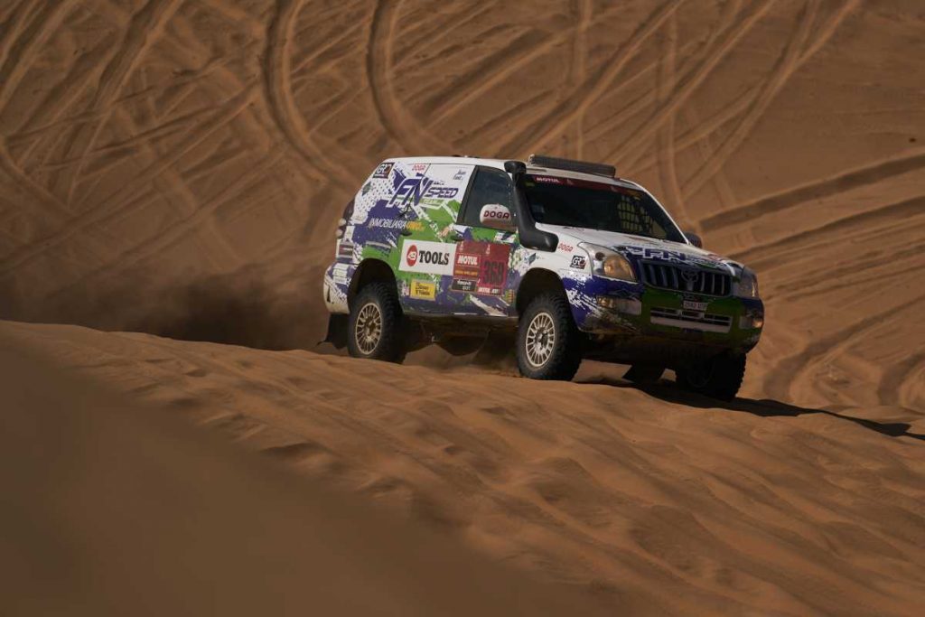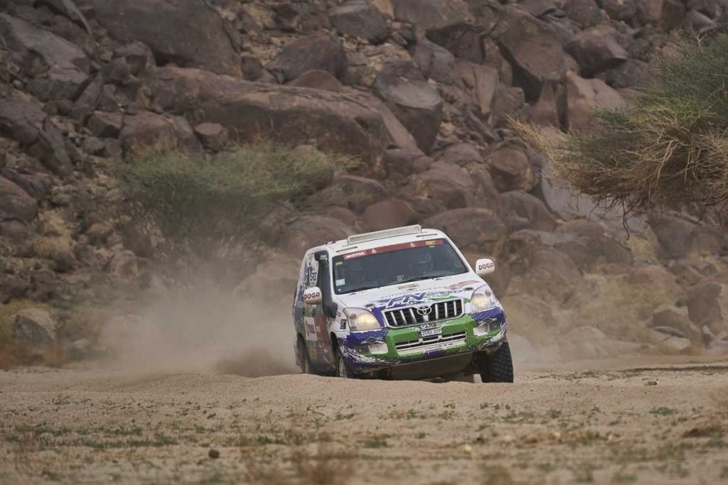 Afortunadamente, los mecánicos del equipo lograron reparar a tiempo el Toyota Land Cruiser de Font para que pudiera disputar las 3 últimas etapas y llegar a Jeddah. ¡Pero qué 3 etapas les estaban aguardando!