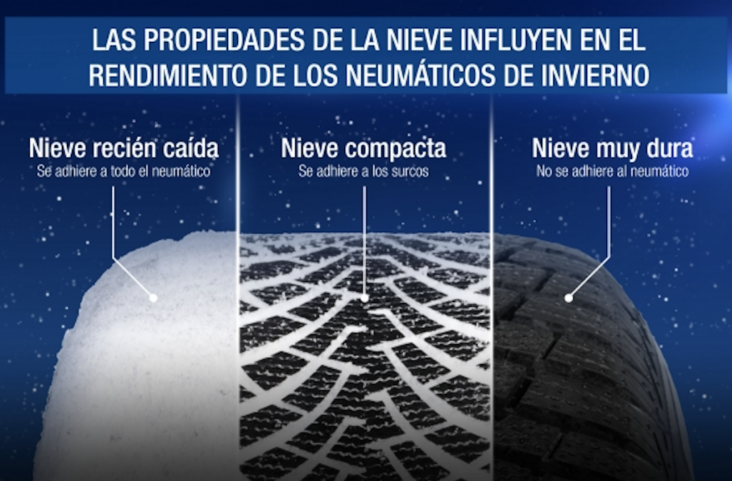 Cómo la nieve interactúa con los neumáticos.