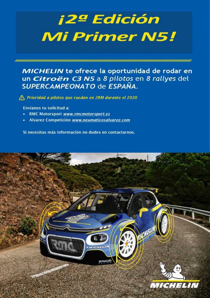 Ya podéis empezar a mandar vuestra solicitud para la segunda edición de ‘Mi Primer N5 Michelin’. Un total de 8 Rallyes del Supercampeonato, 8 pilotos preferiblemente con experiencia en las dos ruedas motrices, uno para cada rally de la geografía. No te descuides, tú puedes ser el elegido.