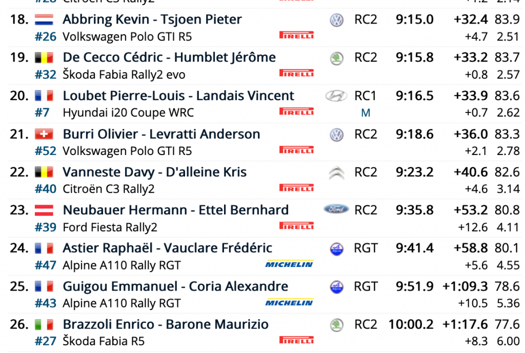 Tiempos tramo Puget-Theniers / La Penne (12,93 km)