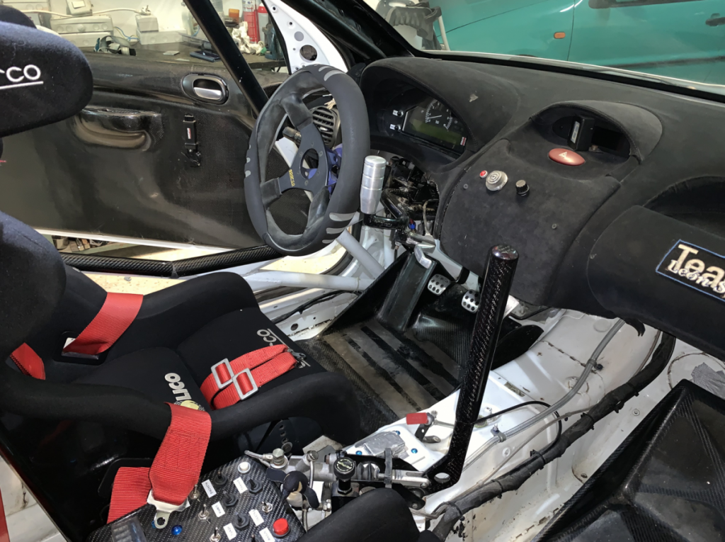 -Muchas piezas hechas en fibra de carbono y repuestos, con gomas para correr la próxima temporada y 11 llantas.