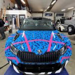 Mucho ha llamado la atención la rotulación que ha presentado el joven piloto lituano Vladas Jurkevicius, cuyo Skoda Fabia Rally2 está lleno de colorido.