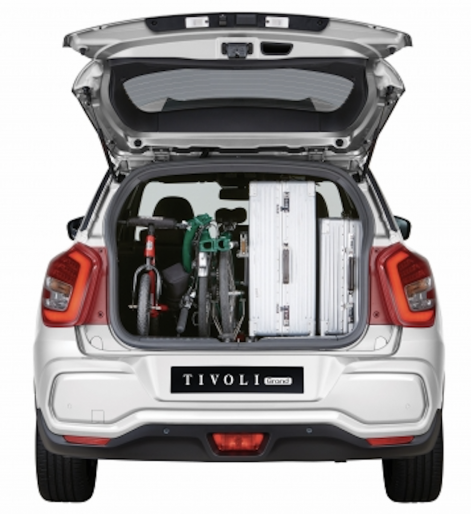 Sobre la base del Tivoli, la versión Grand ofrece un espacio para equipajes líder en su categoría, con 720 litros que, con la segunda fila de asientos completamente plegada, alcanza los 1.440 litros de capacidad y una longitud de carga de 1.879 mm, espacio suficiente para transportar una bicicleta de adulto sin necesidad de quitarle las ruedas.