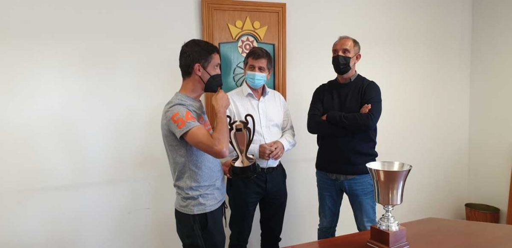 El copiloto santaluceño Rogelio Peñate fue recibido este miércoles por el alcalde de Santa Lucía, Santiago Rodríguez, y el concejal de Deportes, Pedro Sánchez.