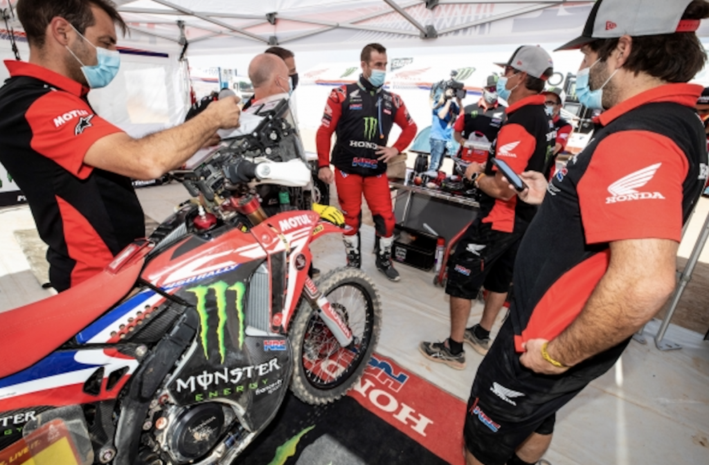 El mantenimiento es un factor clave tanto para el equipo como para los pilotos, que además de ser pilotos hábiles y orientarse bien, tienen que ser buenos mecánicos, capaces de trabajar en las motos durante las etapas. “A lo largo de los años, la CRF450 RALLY se ha ido simplificando para facilitar el mantenimiento. Cuando nos unimos al rally en 2013 no lo sabíamos, así que «desarrollamos en exceso» la moto”, admite Honda. “Temporada tras temporada y gracias a la experiencia adquirida, la máquina se ha vuelto mucho más fácil de mantener. ¡Recuerdo aquellas noches en Sudamérica en las que terminábamos de trabajar en las motos a medianoche!”.