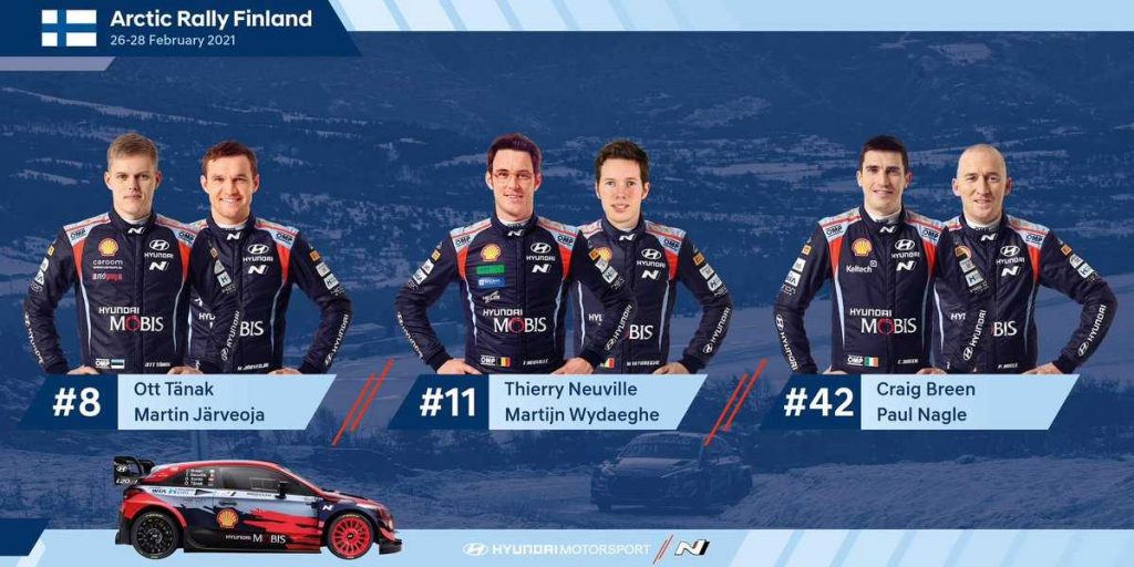 El equipo Hyundai Motorsport ha desvelado los equipos con los que competirá en la próxima cita del Campeonato del Mundo de Rallys (WRC), el Artic Rally de Finlandia.