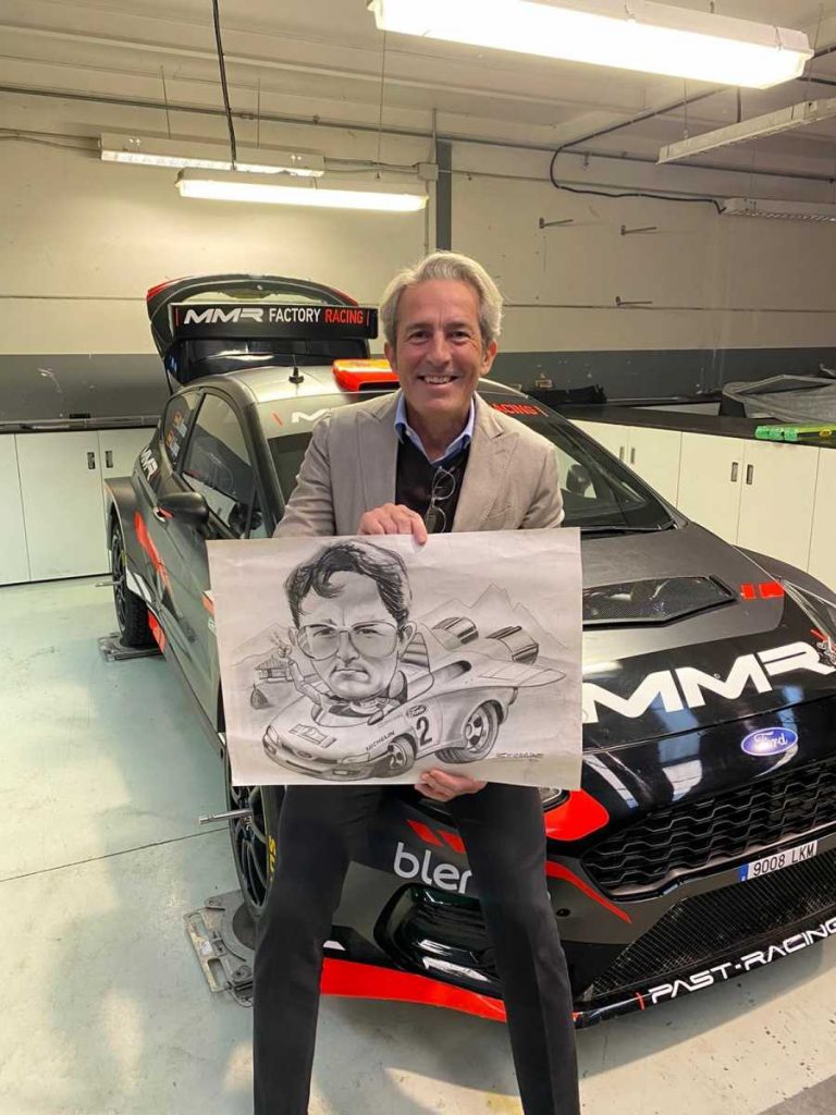 El piloto asturiano Daniel Alonso recibía una caricatura suya de la temporada 1993. Como dice el refranero español nunca es tarde.