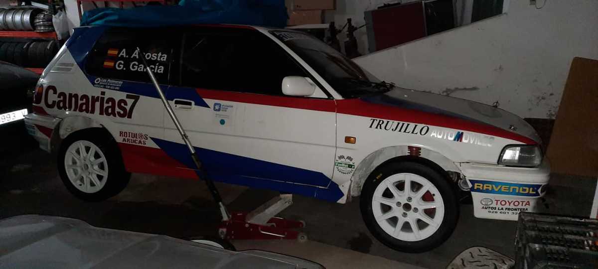 Preparando el Toyota y dejándolo al día para empezar la temporada 2021 con 8 gomas asimétricas nuevas y a la espera de los rótulos de los nuevos sponsors.
