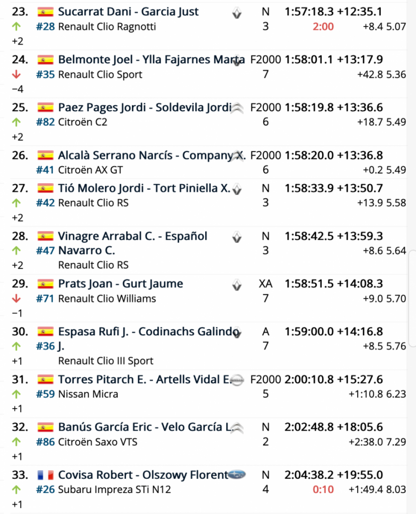 Pons y Carrera marcarían los mejores tiempos en los siguientes tres tramos cronometrados, cerrando la primera etapa con 22.1 respecto a Bassas y De Ferrer.