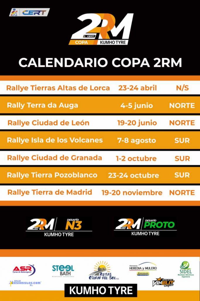 La Copa 2RM, certamen que se disputa en la Copa de España de Rallyes de Tierra, una novedosa fórmula de promoción surgida del Desafío Kumho N3, ha publicado su calendario de 2021.