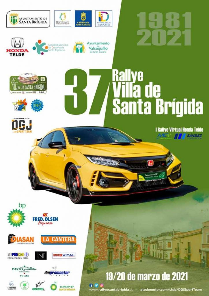 El XXXVII Rallye Villa de Santa Brígida cuenta con el apoyo del Ayuntamiento de Santa Brígida, el Cabildo de Gran Canaria a través del Instituto Insular de Deportes, Honda Telde, Sociedad Municipal de Deportes de Santa Brígida, Ayuntamiento de Valsequillo, Bp, Ferretería La Cantera, DIASAN Puertas Automáticas, Carnicerías Pasto y Bellota – Telde Arnao, Fred. Olsen Express, Estación Bp Santa Brígida, Atodomotor.com, Provital, Neprocan, Promaster, Nn Computers, Construc, Ledtse y Star Garage Shop.