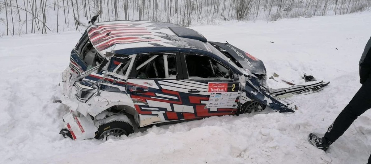 Fuerte salida de carretera la que ha tenido el equipo ruso formado por Nikolay Gryazin y Konstantin Aleksandrov (Volkswagen Polo GTI R5) cuando rodaban en la cuarta posición del Rally Otepää Talveralli 2021, cita que comanda Ott Tänak (Hyundai i20 Coupe WRC), con 25 de ventaja sobre su compañero de equipo Thierry Neuville.