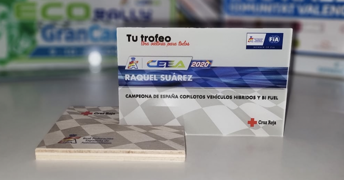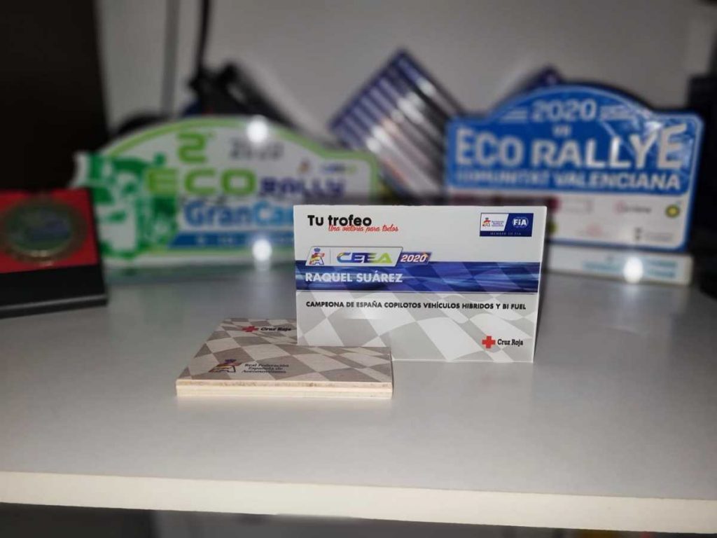 La joven copiloto grancanaria Raquel Suárez, que estuvo en la temporada 2020 a la derecha de Javier Robledano, recibió su premio de campeona de España de Vehículos Híbridos y Bi Fuel.