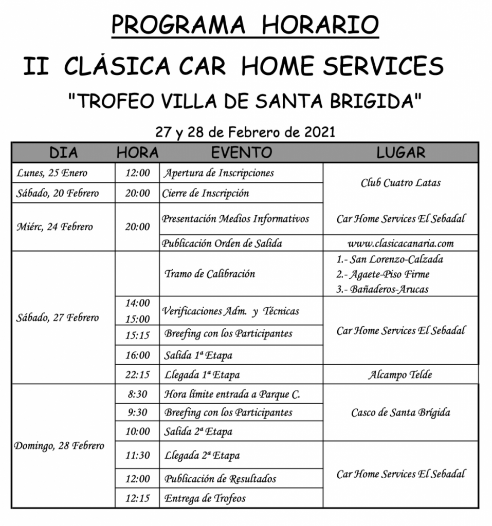 La II Clásica Car Home Services “Trofeo Villa de Santa Brígida se celebrará los días 27 y 28 de febrero