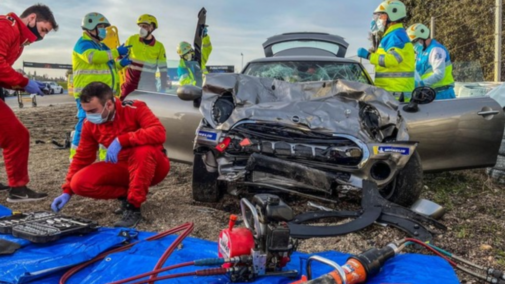 El Servicio de Intervención Rápida del circuito ha colaborado con el Summa. Su UVI móvil ha iniciado las labores de reanimación hasta la llegada de los sanitarios de la Comunidad de Madrid. Y su equipo de extricación ha rescatado al herido del interior del coche.