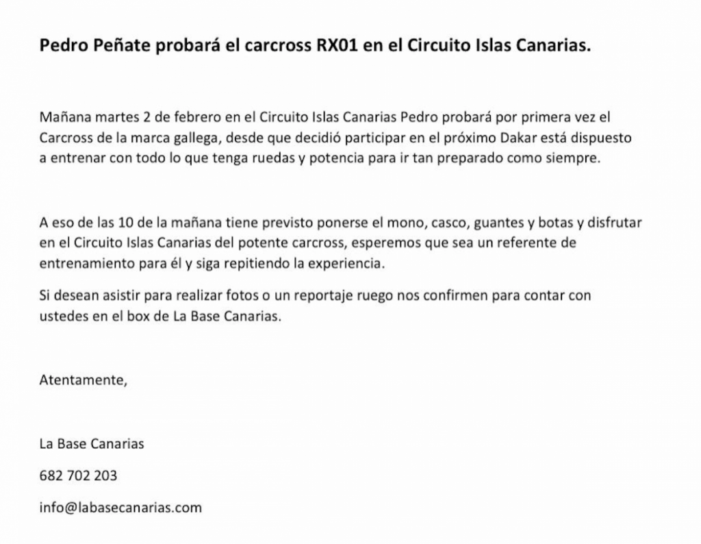 El piloto grancanario Pedro Peñate, especialista en el mundo de las motos, probará el carcross RX01 en el Circuito Islas Canarias con la idea de rodar de cara a una futura particpación en el Dakar.