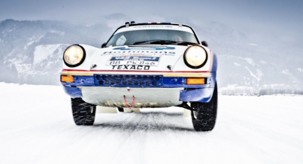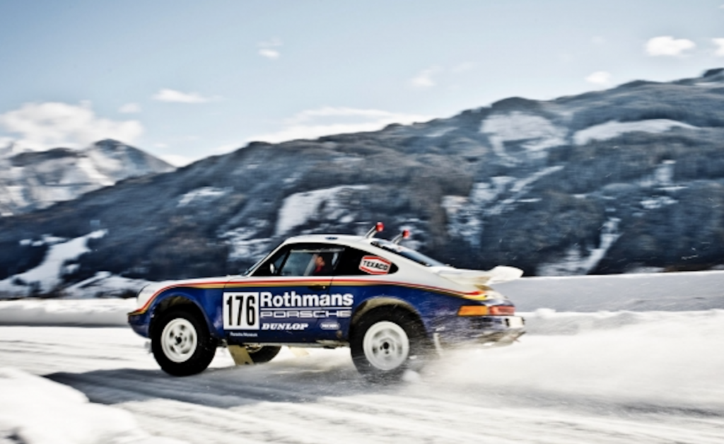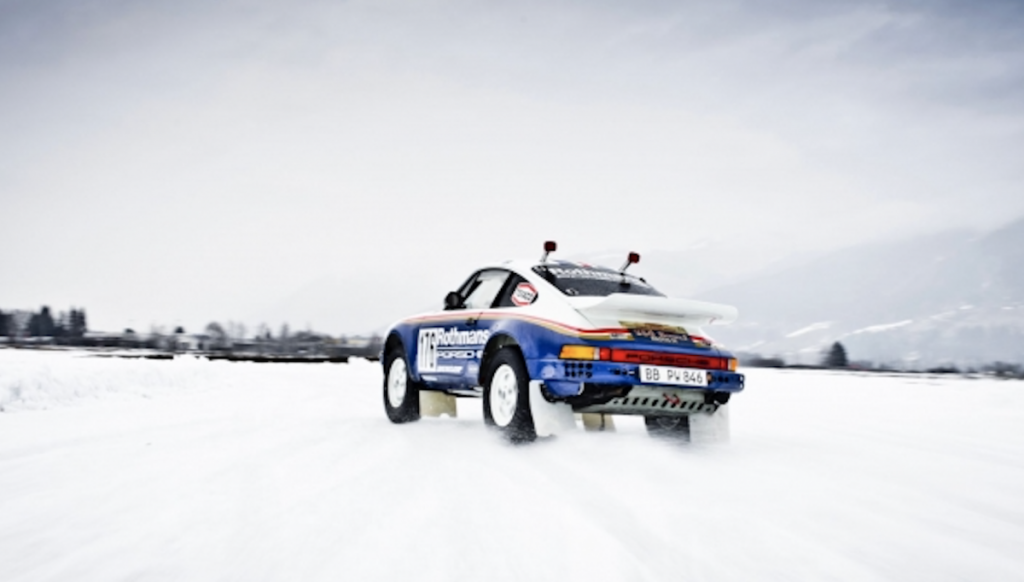 En una sola vuelta al circuito improvisado sobre hielo, Röhrl consigue dominar al 953 con sus pies bailando sobre los pedales, logrado unas cruzadas espectaculares sin esfuerzo aparente. El piloto conduce con la misma precisión que hace varias décadas, cuando luchaba por el título del Campeonato del Mundo. El inconfundible sonido del motor bóxer retumba en el valle, algo que Walter define como un elemento clave del coche: “Para cualquier amante del automovilismo de competición, esta melodía es un gran aliciente. Cuando vas al volante, es un auténtico estímulo”. Es evidente que Rohrl se lo está pasando bien hoy, ya que no deja de hacer todo tipo de derrapajes en la pista, vuelta tras vuelta, levantando hielo a su paso.