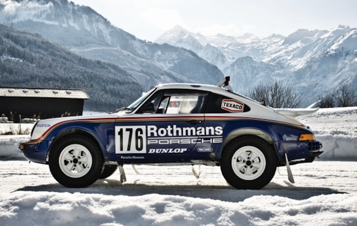 El 953 del Museo Porsche se encuentra hoy muy lejos de su hábitat natural, rodeado de altas cumbres y de nieve hasta donde alcanza la vista. Desarrollado en 1984 para competir en el exigente Rallye París-Dakar, se diseñó teniendo en cuenta las temperaturas extremas y los terrenos desérticos del continente africano. Nunca antes un Porsche se había enfrentado a unas condiciones tan duras.