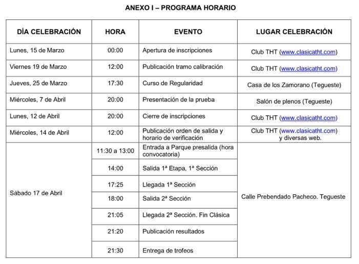 La apertura de inscripciones se realizará el próximo lunes 15 de marzo y se publicará en nuestra web clasicatht.com y los medios habituales.