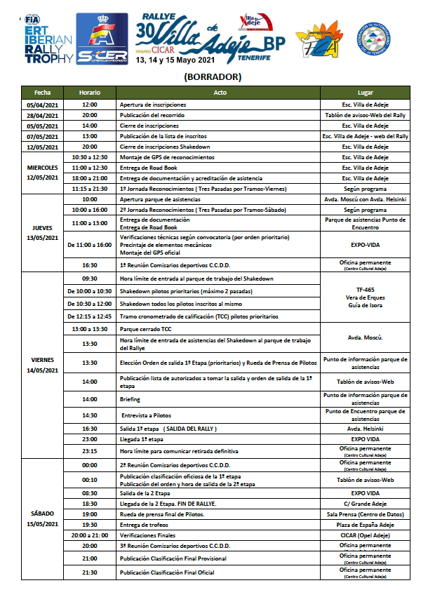 Restan dos meses, sesenta días, para que llegue el día «D» del Rallye Villa de Adeje, BP Tenerife – Trofeo CICAR prueba tinerfeña puntuable para el European Rally Trophy (ERT) así como para el Supercampeonato de España de Rallyes (SCER) que se disputará los próximos días 14 y 15 de mayo.
