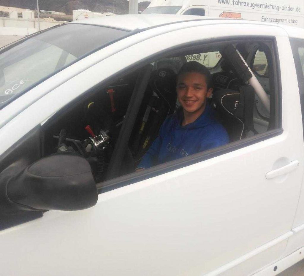 El joven piloto lanzaroteño acaba de adquirir el Citroën C2 con el que ha venido compitiendo los cursos pasados el equipo de Alejandro Carreño, para seguir progresando en su trayectoria deportiva.