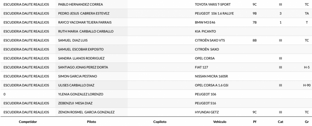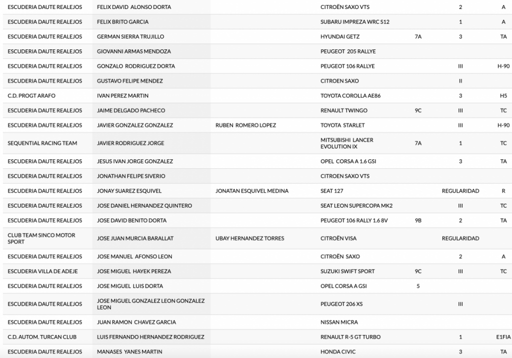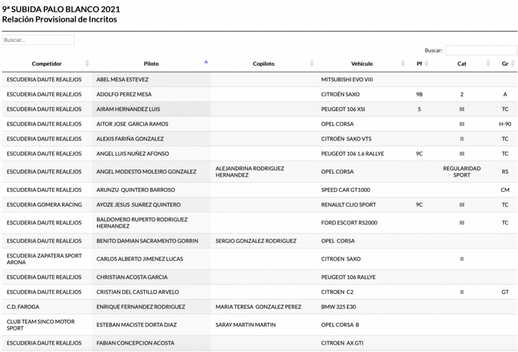 Publicamos la primera relación Provisional de Incritos de la 9ª Subida Palo Blanco, prueba a celebrarse en el norte de la isla de Tenerife el sábado 27 de marzo en la carretera TF‐326.