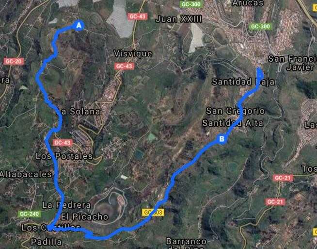 El tramo arranca desde Las Vegas, cerca del Barranco de Arucas, en el denominado Camino del Arco, que conduce desde Fuente del Hierro a Los Portales por Lomo Jurgón. Una vez alcanzada la carretera Arucas-Teror, a la altura de la gasolinera, se continúa hasta el barrio de Los Castillos, al que se entra por una complicada sucesión de cruces, hasta proseguir por la carretera que lleva a Santidad Alta. Tanto en un sentido como en otro se equilibran los desniveles y el tipo de carretera, por lo que será muy selectivo en cualquiera de sus dos versiones En el sentido Arucas-Santidad, para evitar una peligrosa recta final en pronunciada bajada, se recorta por la meta en unos 500 metros, parte que si se hace en la otra dirección del tramo.